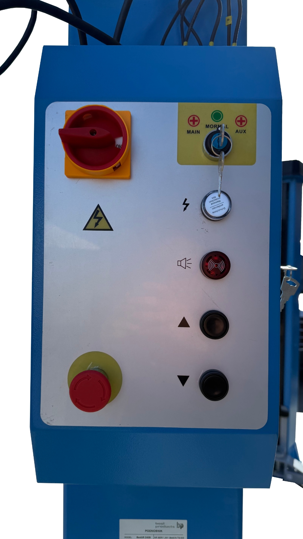- Elektroniczny system synchronizacji unoszenia obu wózków