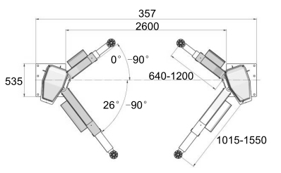 - Zasięg ramion – długie 2-stopniowe 1015 – 1550 mm