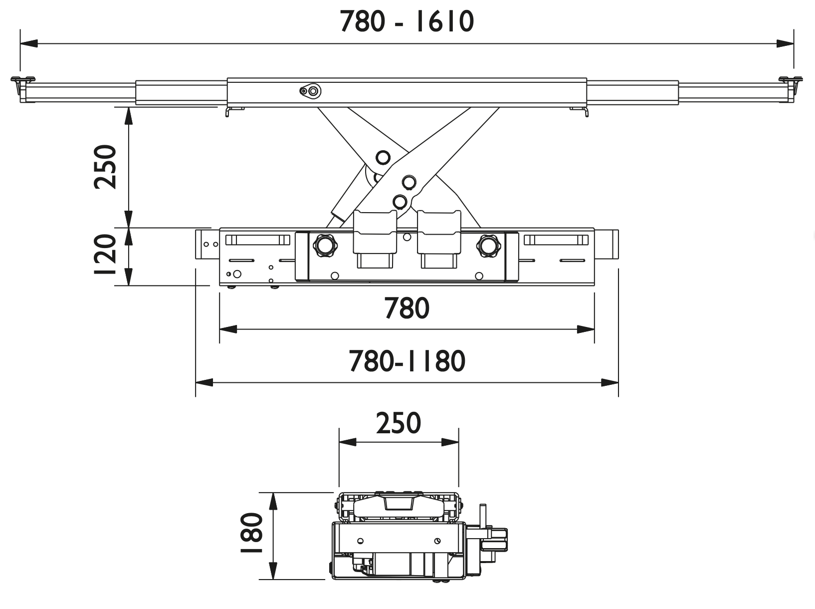 - Dźwignik osi o udźwigu 2.6 tony przesnaczony do stosowania na podnośnikach Cascos 4-kolumnowych i nożycowych (bez krawędzi)