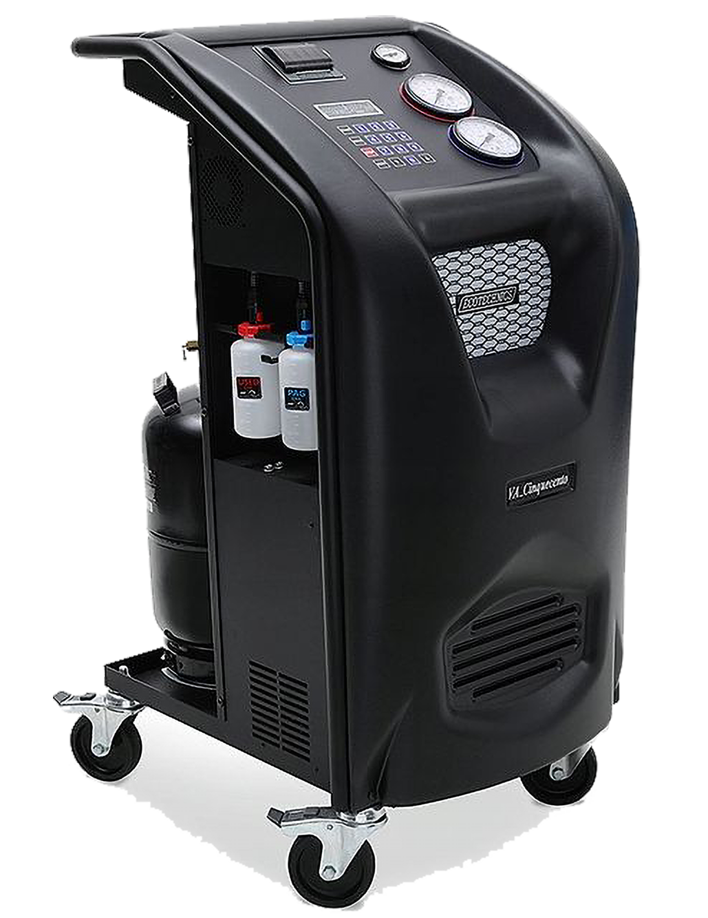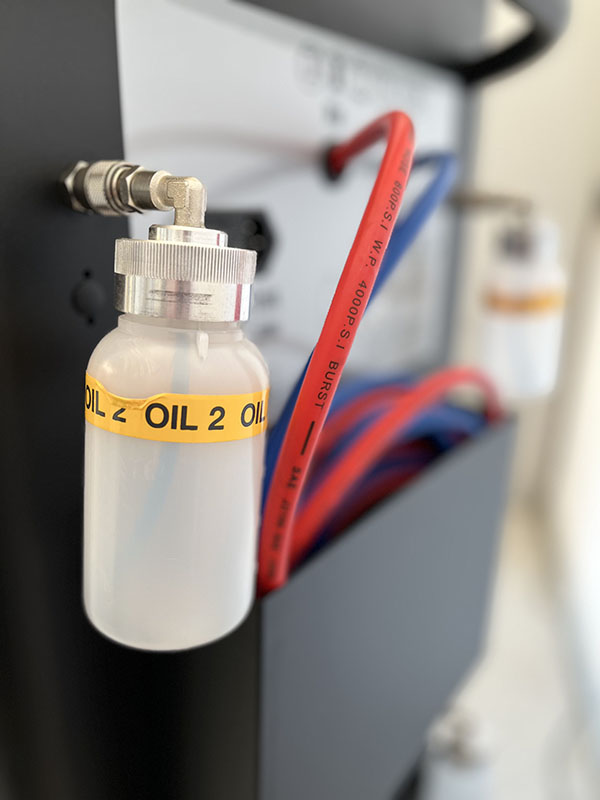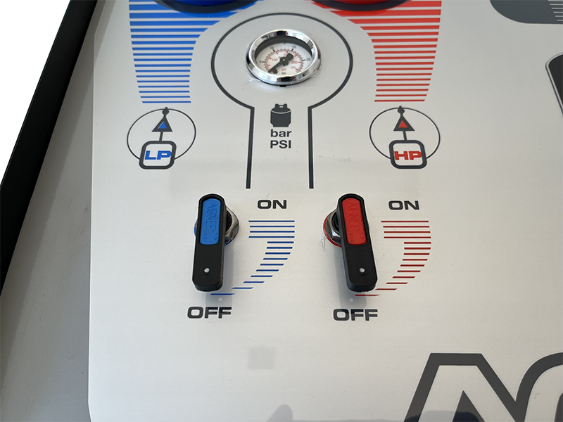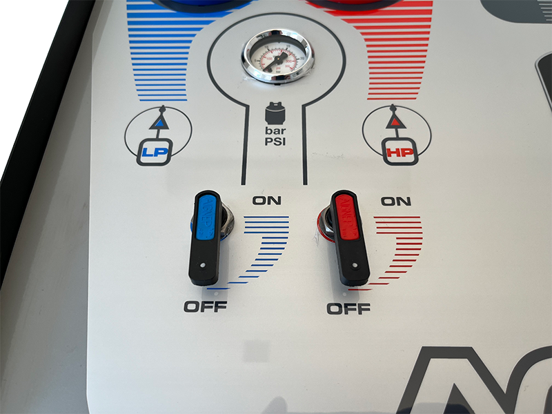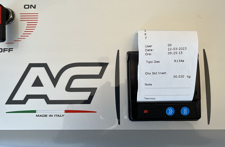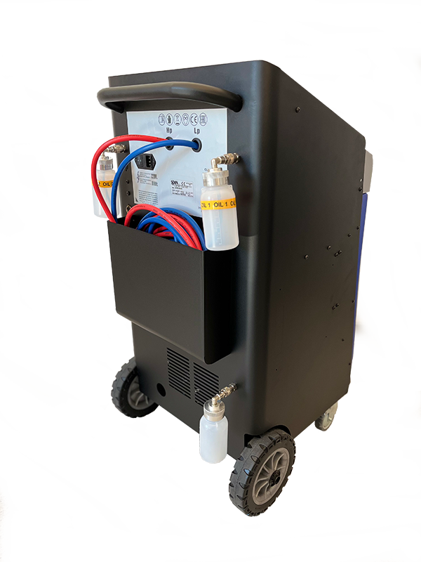 kontrola nieszczelności. Zbiornik czynnika o pojemności 12 litrów. W standardzie węże o długości 600 cm. W zestawie z drukarką, blokadą wagi i systemem ładownia czynnika w niskich temperaturach (BST).