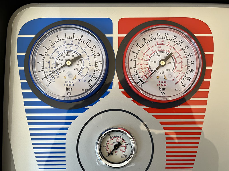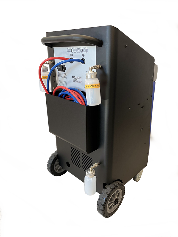 Automatyczna stacja do obsługi samochodowych systemów klimatyzacji na czynnik R134a z elektroniczną wagą do czynnika chłodniczego. Wyświetlacz LCD 3,2″ z