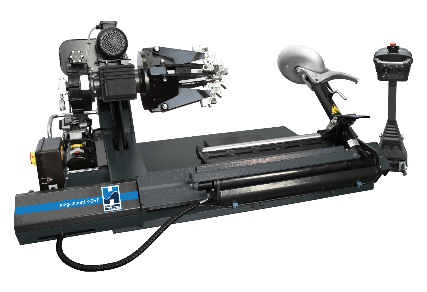 Montażownica przeznaczona do wymiany opon dętkowych i bezdętkowych kół samochodów ciężarowych, autobusów oraz pojazdów budowlanych I rolniczych do 56” średnicy obręczy i całkowitym ciężarze koła do 1500 kg.