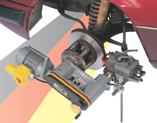 Obrabiarka E326g wyznacza nowy trend w technice napraw hamulców samochodowych przy przetaczaniu tarcz hamulcowych bezpośrednio na zawieszeniu koła. Metoda ta daje doskonałą jakość obróbki powierzchni, oszczędność czasu demontażu i montażu regenerowanej tarczy.