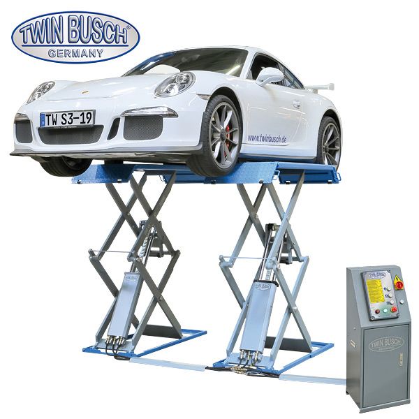 Podnośnik nożycowy do montażu na posadzce. Dzięki wyjątkowo niskiemu profilowi umożliwia obsługę również bardzo nisko zawieszonych samochodów sportowych. Podwójne siłowniki i system wahaczy zapewniają duże możliwości unoszenia zróżnicowanych pojazdów.