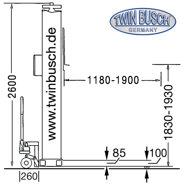 - Wysokość podnoszenia 1830 - 1930 mm