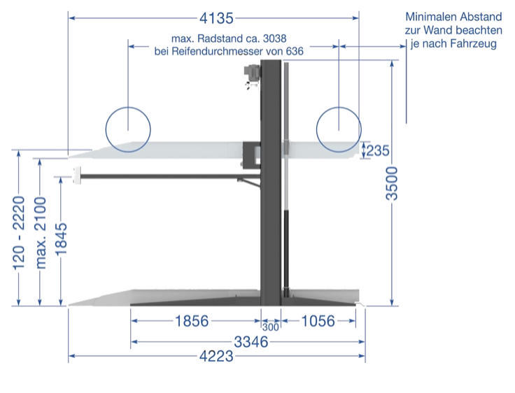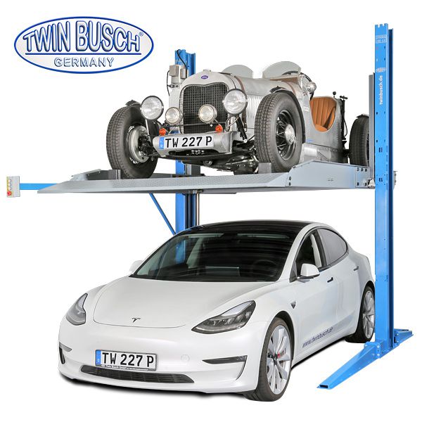 Praktyczny podnośnik parkingowy z dwoma kolumnami i automatycznym odblokowaniem. Dzięki konstrukcji podnośnika z 2 kolumnami nośnymi wymagana jest mniejsza powierzchnia niż w przypadku podnośników 4-kolumnowych, dzięki czemu podnośnik idealnie nadaje się do pomieszczeń o ograniczonej przestrzeni. Ponadto podnośniki typu TW 227 P można ustawiać jeden obok drugiego (w dowolnej liczbie). Pozwala to na lepsze gospodarowanie przestrzenią. Zespół sterujący z przodu zapewnia wygodne podnoszenie i opuszczanie platformy parkingowej. Dzięki bardzo dużej wysokości podnoszenia 2100 mm i udźwigu 2700 kg podnośnik jest również imponująco dobry do wysokich i cięższych pojazdów, takich jak duży SUV, minibus lub VW Transporter T6. Dzięki solidnie zbudowanej i zabezpieczonej (ocynkowanej) platformie pojazd poniżej jest chroniony przed olejem i brudem.