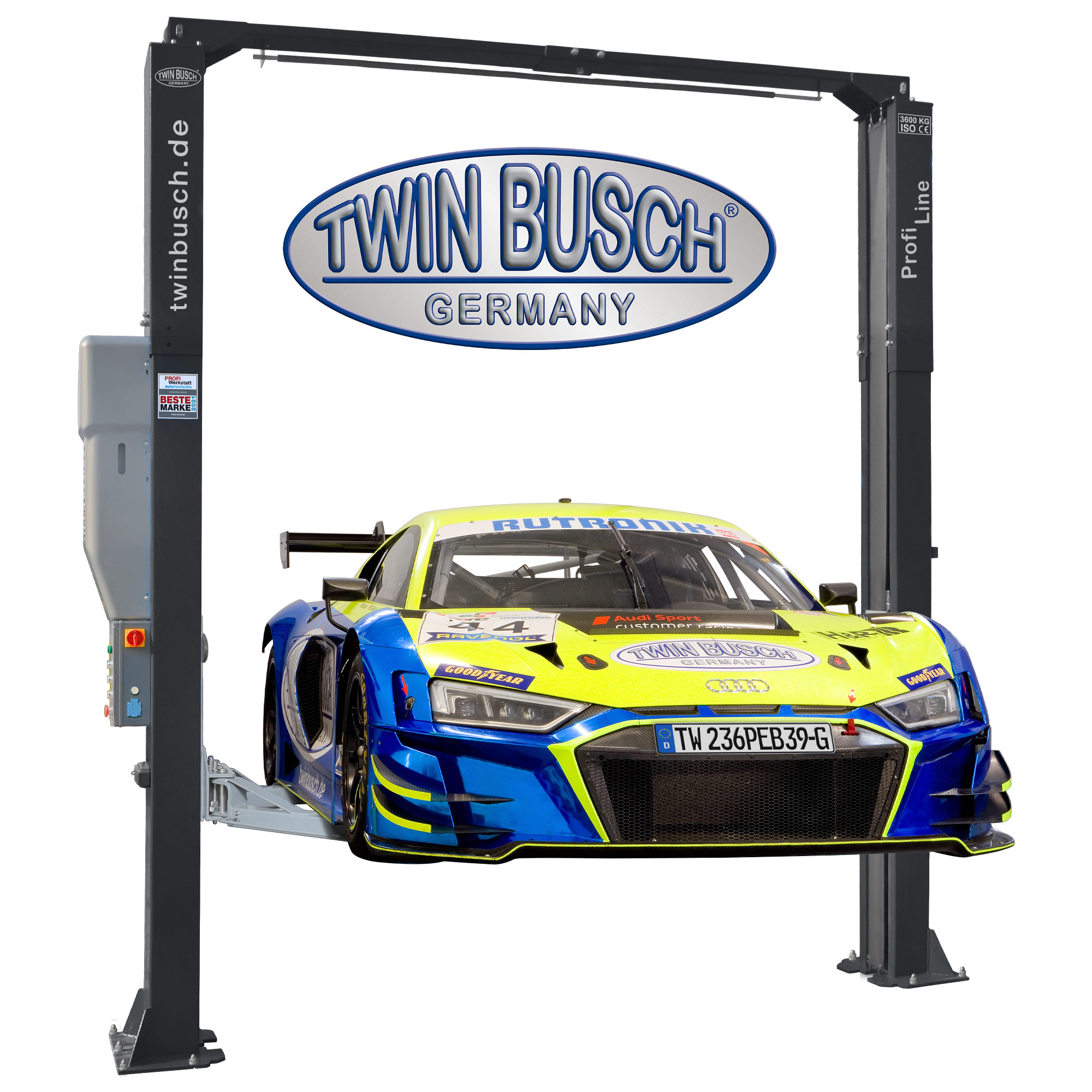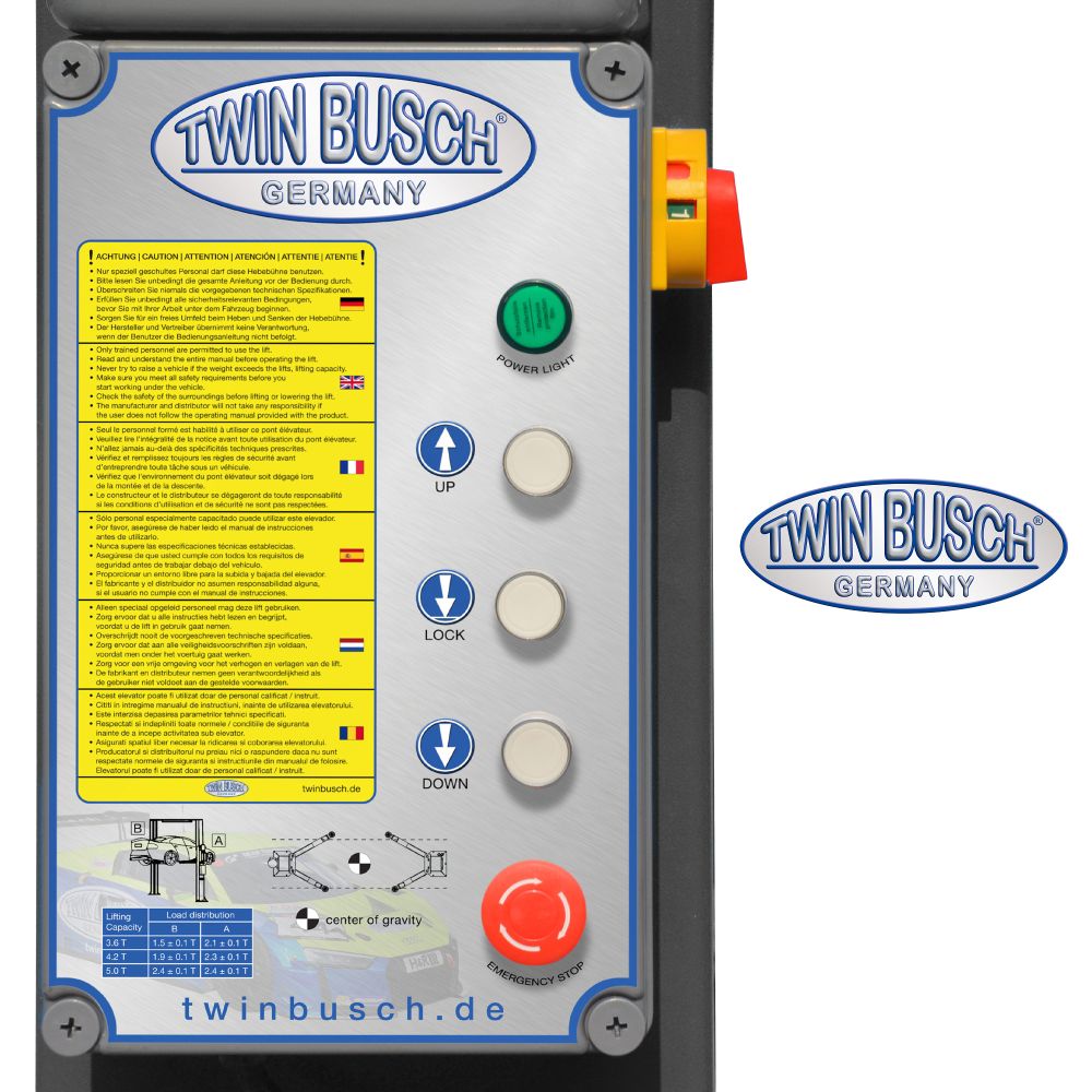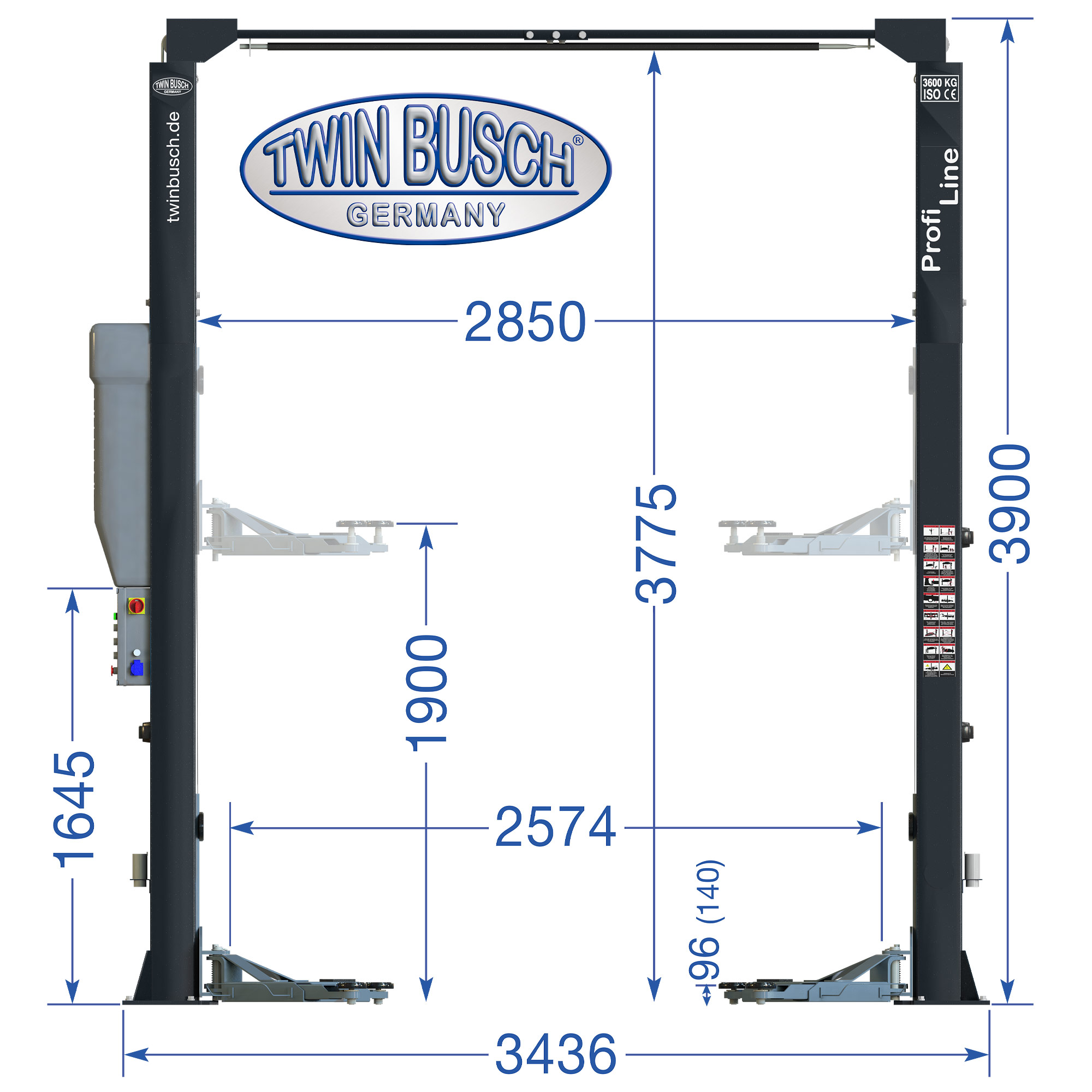 TW236PEB3.9-400-G Podnośnik 2-kolumnowy 3,6T, kolor: antracyt, łączony górą na wys. 3,9 m
