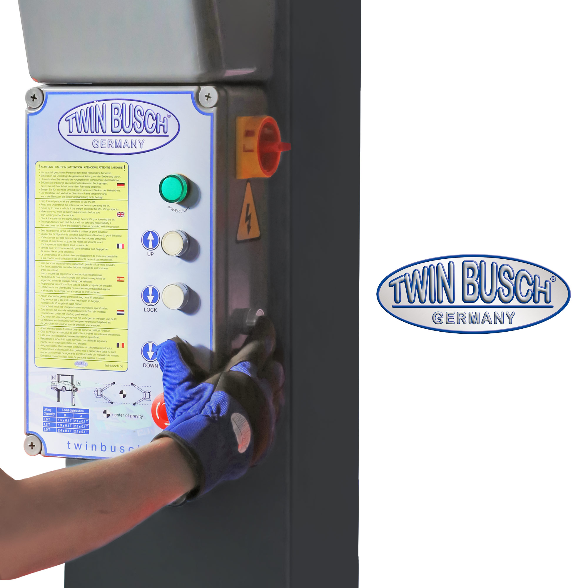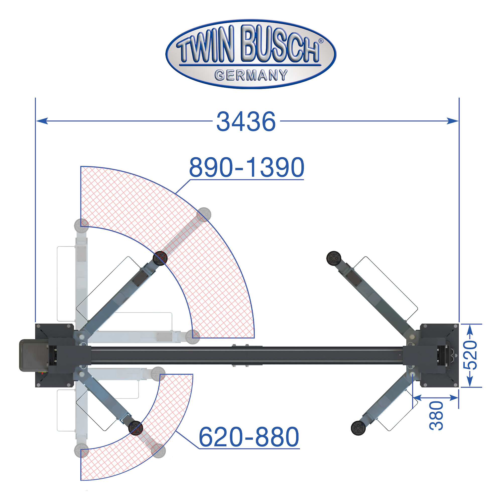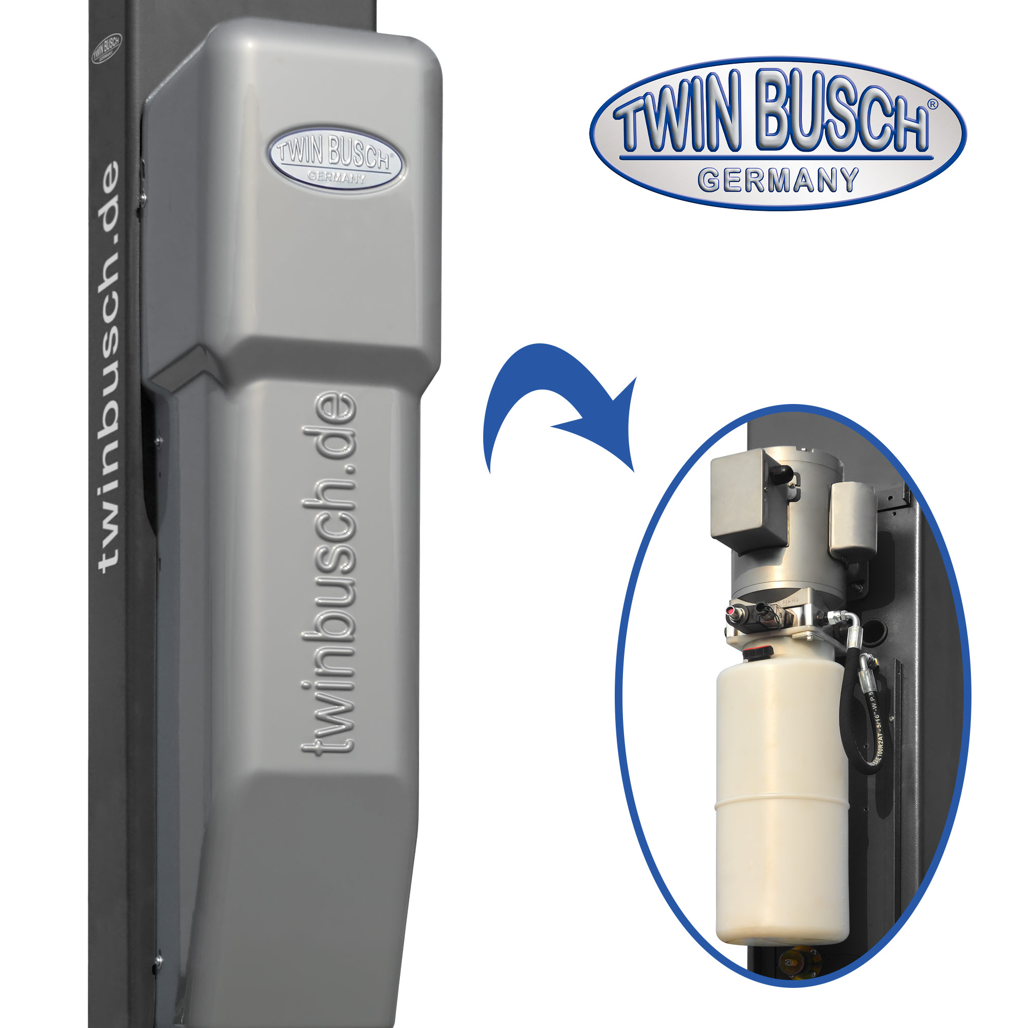 TW236PEB3.9-400-G Podnośnik 2-kolumnowy 3,6T, kolor: antracyt, łączony górą na wys. 3,9 m