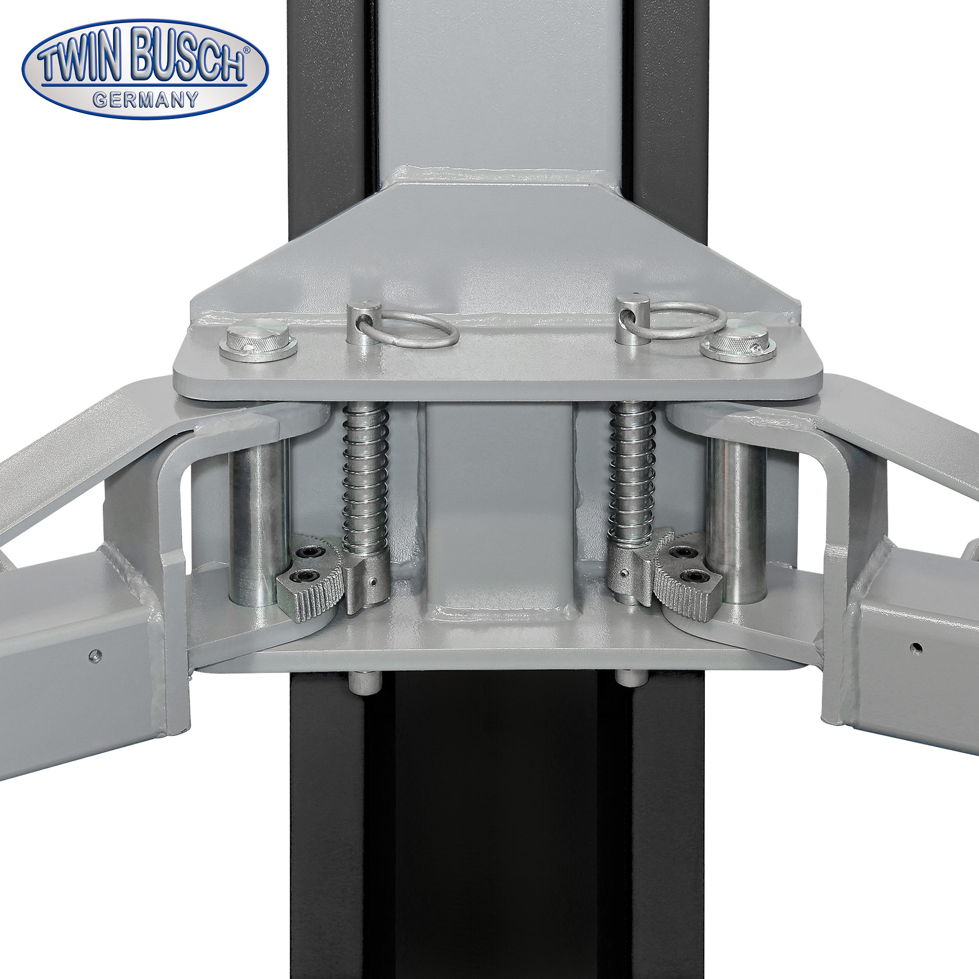 Podnośnik łączony górą – WOLNY PRZEJAZD Elektromagnetyczne zwalnianie rygli bezpieczeństwa, regulowane podkładki unoszące z adapterami wysokości. Gładka podłoga. Teraz również w kolorze antracytowym.