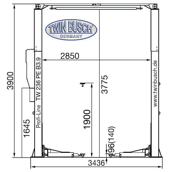 TW236PEB3.9-400 Podnośnik 2-kolumnowy 3,6T, łączony górą na wys. 3,9 m