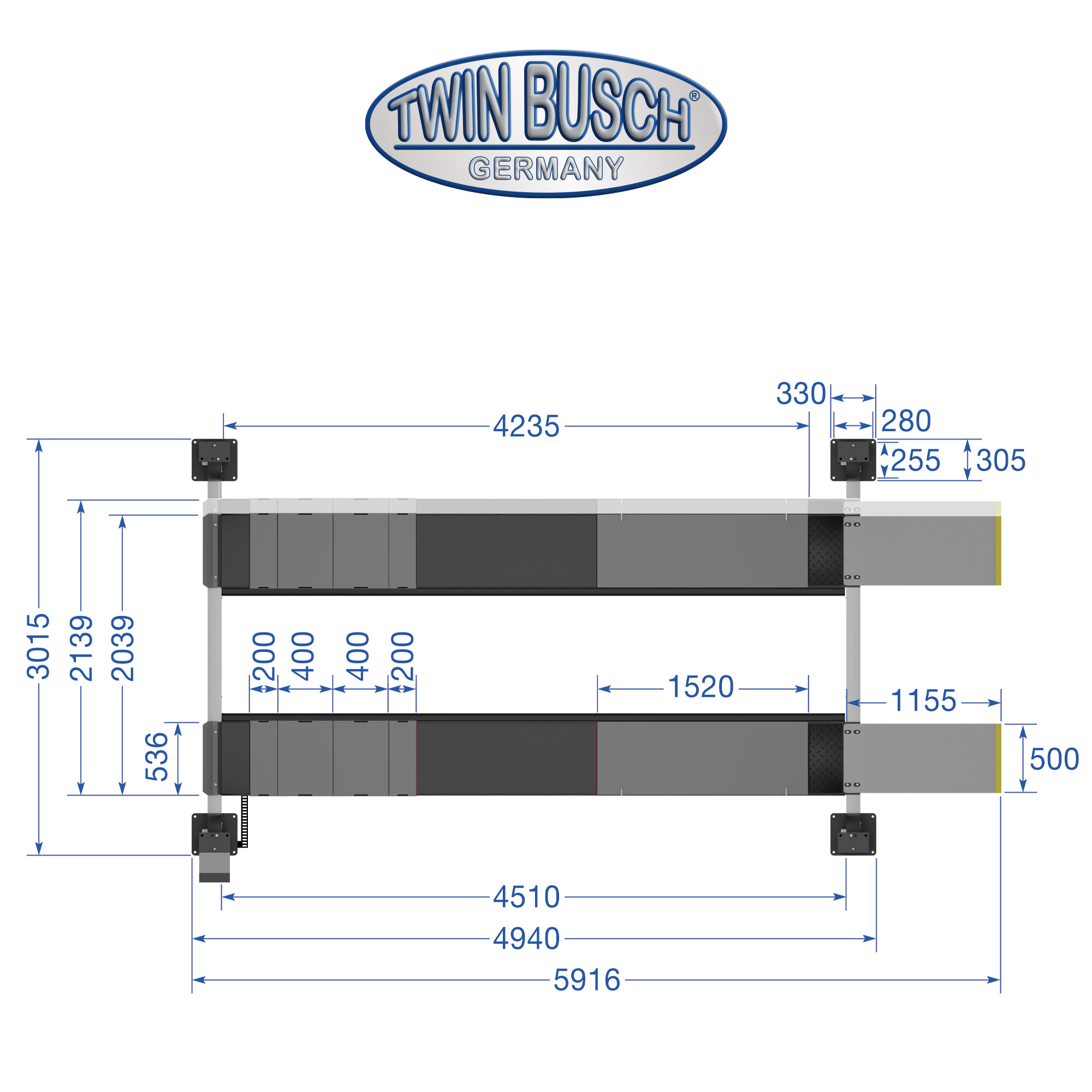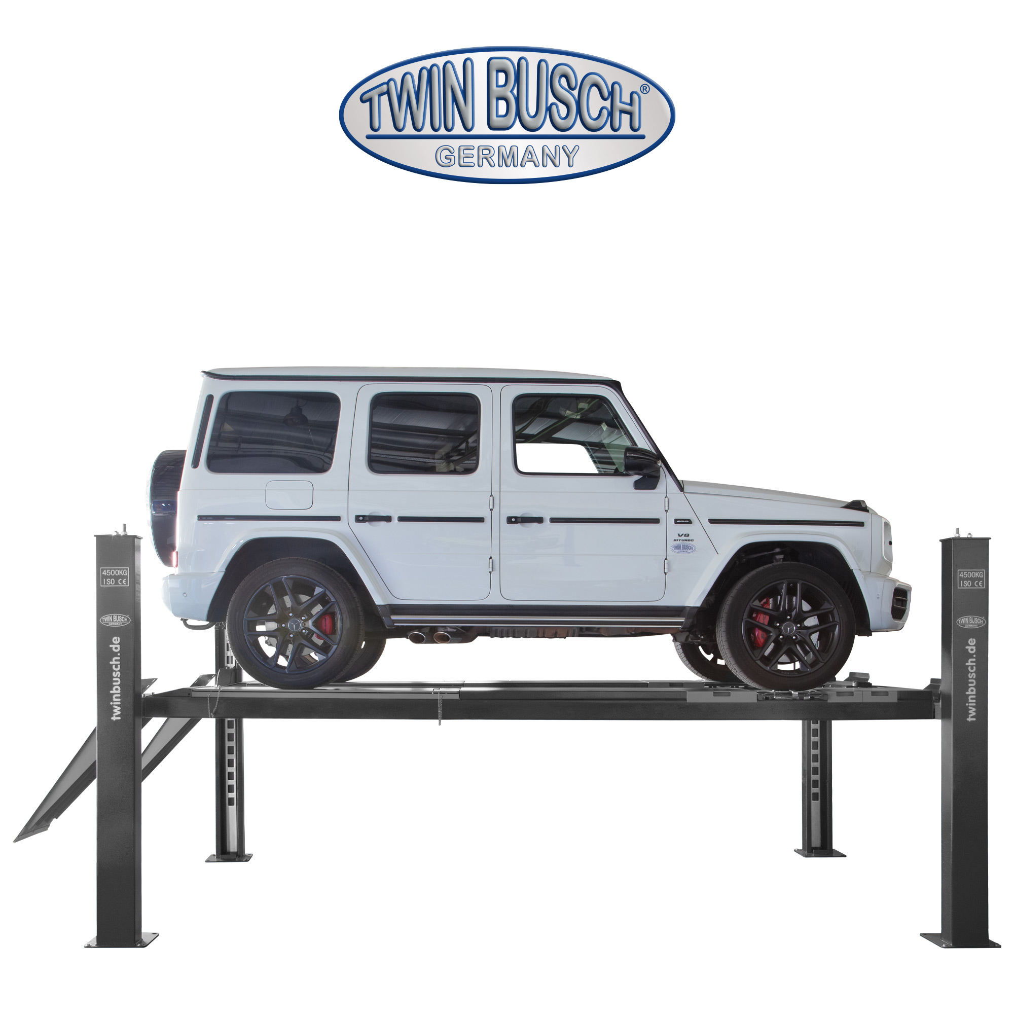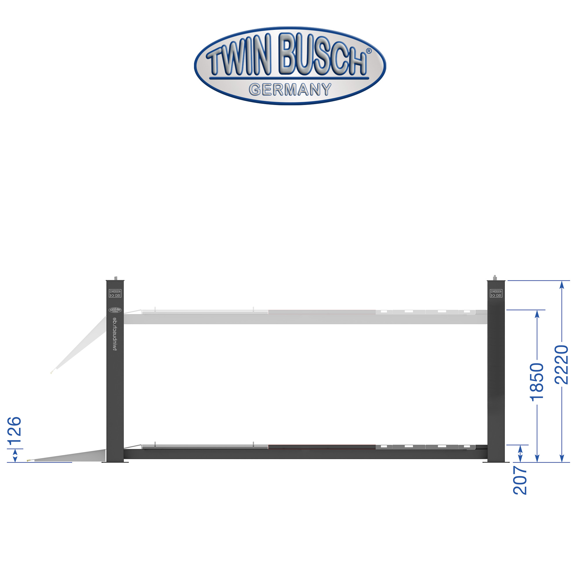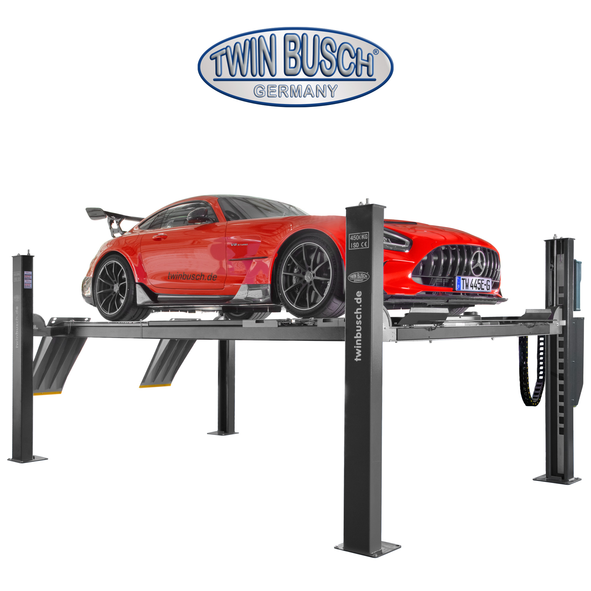 TW445E-400-G Podnośnik czterokolumnowy, udźwig 4.5T, elektromagnetyczne zwalnianie rygli, kolor antracyt