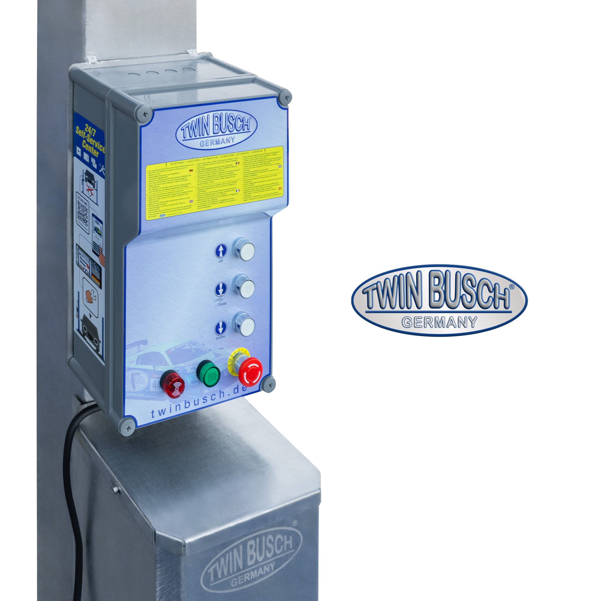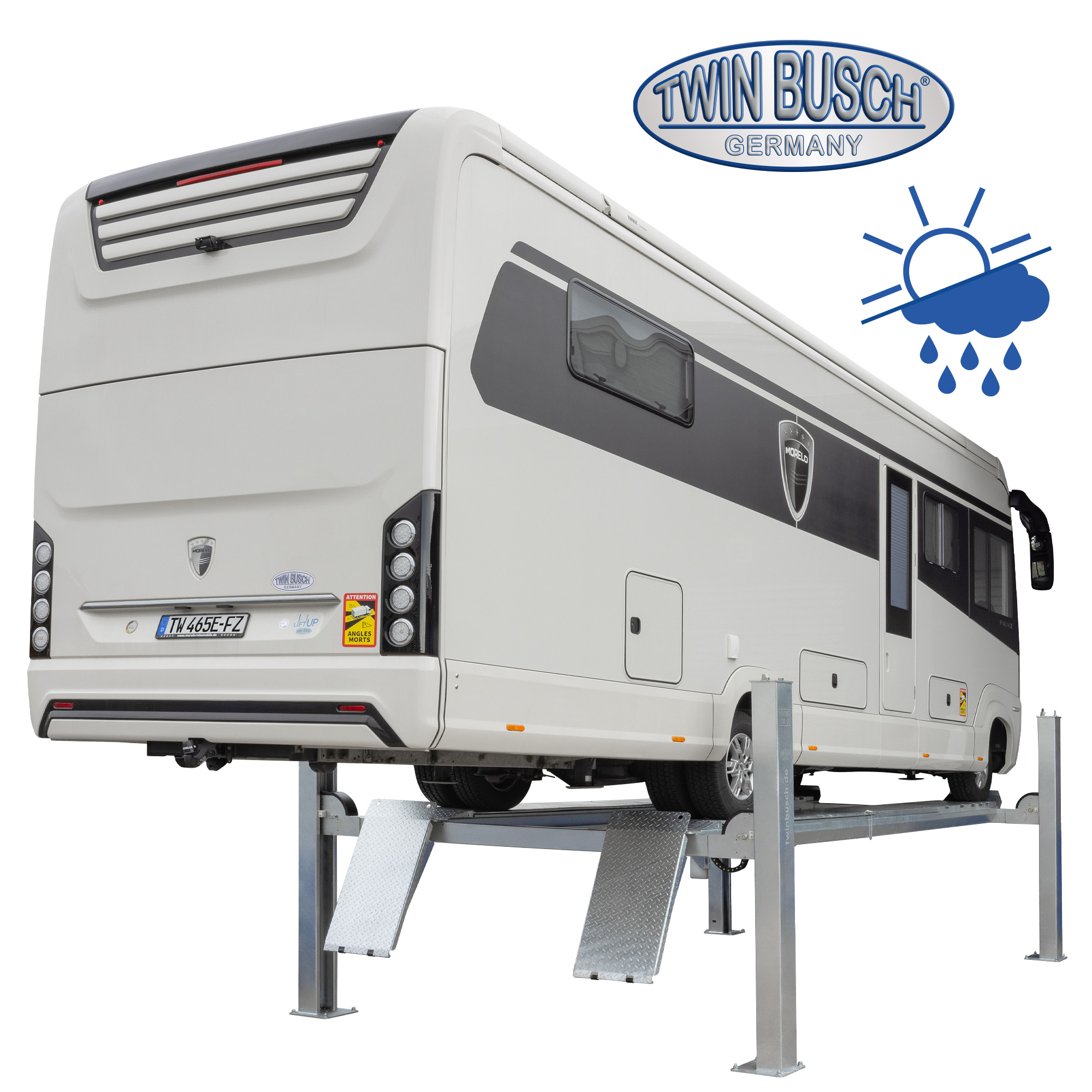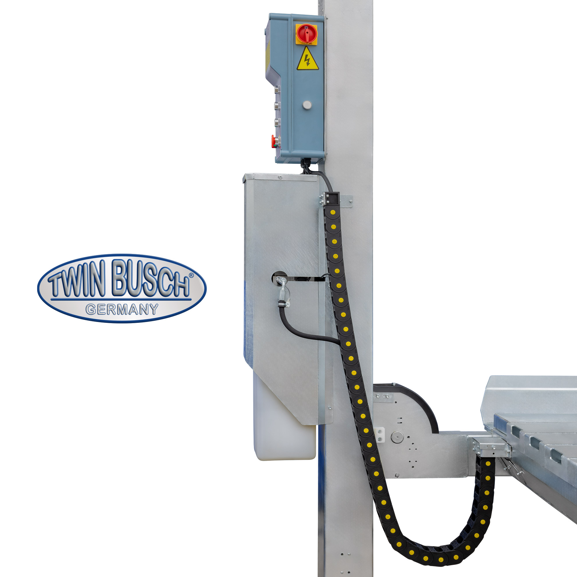 Do użytku na zewnątrz oferujemy opcjonalny zestaw do konwersji TW465E-MKA. Dzięki konwersji lub instalacji zestawu do konwersji na mobilną jednostkę sterującą, elektryka i silnik mogą być przechowywane w suchym miejscu, dzięki czemu TW465E-FZ nadaje się również do użytku na zewnątrz.
