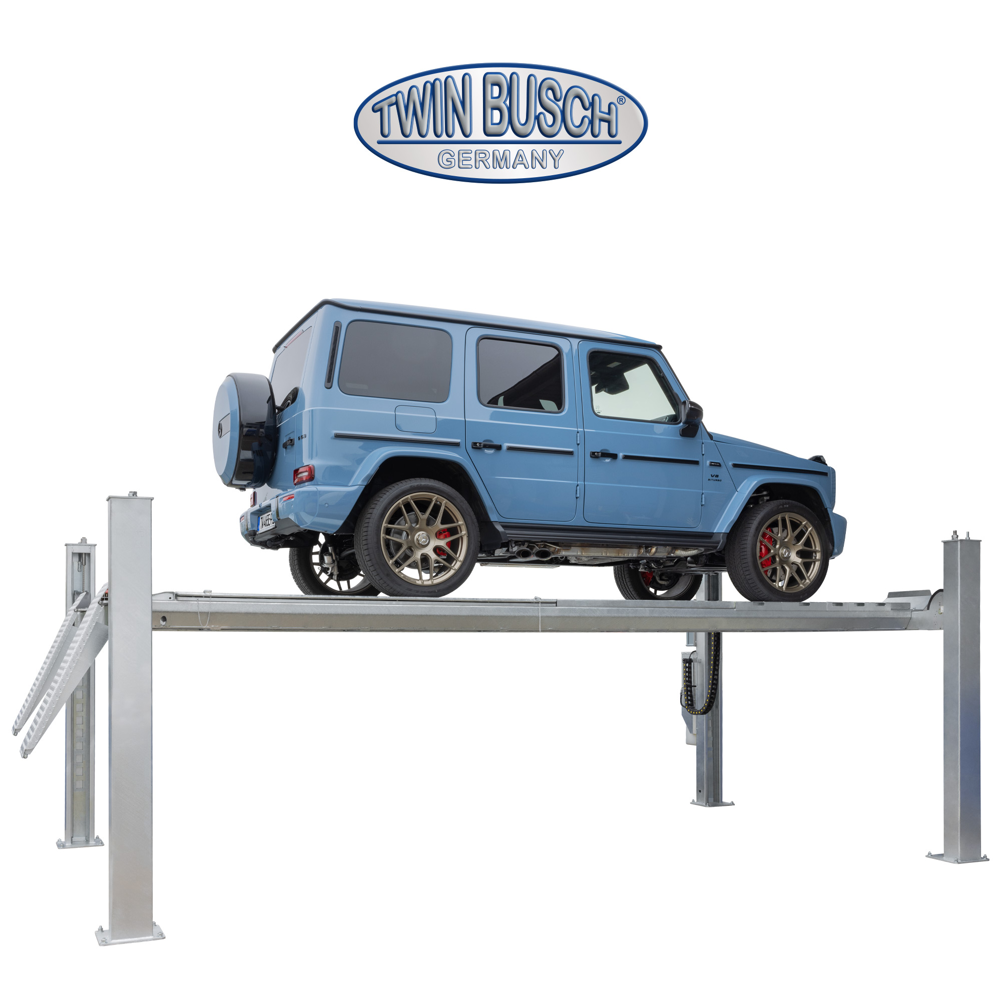 Elektro-hydrauliczny podnośnik 4-kolumnowy z automatycznym (elektromagnetycznym) zwalnianiem rygli zabezpieczających. Zaprojektowany i wykonany do stosowania na zewnątrze budynków. W pełni ocynkowany, optymalnie zabezpieczony przed korozją. Idealnie sprawdzi się jako jako podnośnik recepcji lub do ustawiania geometrii kół. Dzięki udźwigowi 6500 kg można podnosić wszystko, od samochodów osobowych po dostawcze.